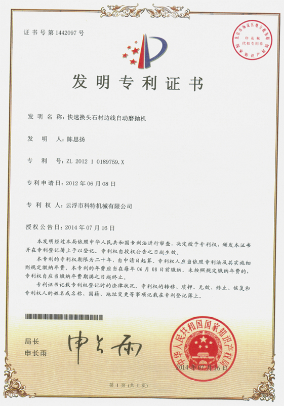企業(yè)組建了“云浮市石材機(jī)械裝備工程技術(shù)研究開(kāi)發(fā)中心”,并與高校和科研院所密切合作,致力于光機(jī)電一體化產(chǎn)品的研發(fā)、生產(chǎn)、銷售和服務(wù)。主要產(chǎn)品有框架鋸、全自動(dòng)連續(xù)磨拋機(jī)、橋式自動(dòng)切割機(jī)、全自動(dòng)仿形石線機(jī)、數(shù)控金剛石繩鋸、裁切機(jī)等。產(chǎn)品具有自動(dòng)化程度高、加工精度高和生產(chǎn)效率高等特點(diǎn)。產(chǎn)品除國(guó)內(nèi)銷售外,還出口到歐美、東南亞、韓國(guó)、印度、中東、非洲、俄羅斯、澳大利亞等國(guó)家和地區(qū),深受用戶好評(píng)。“橋式自動(dòng)切割機(jī)”被認(rèn)定為廣東省高新技術(shù)產(chǎn)品,擁有發(fā)明專利1項(xiàng)、實(shí)用新型專利1項(xiàng)。
